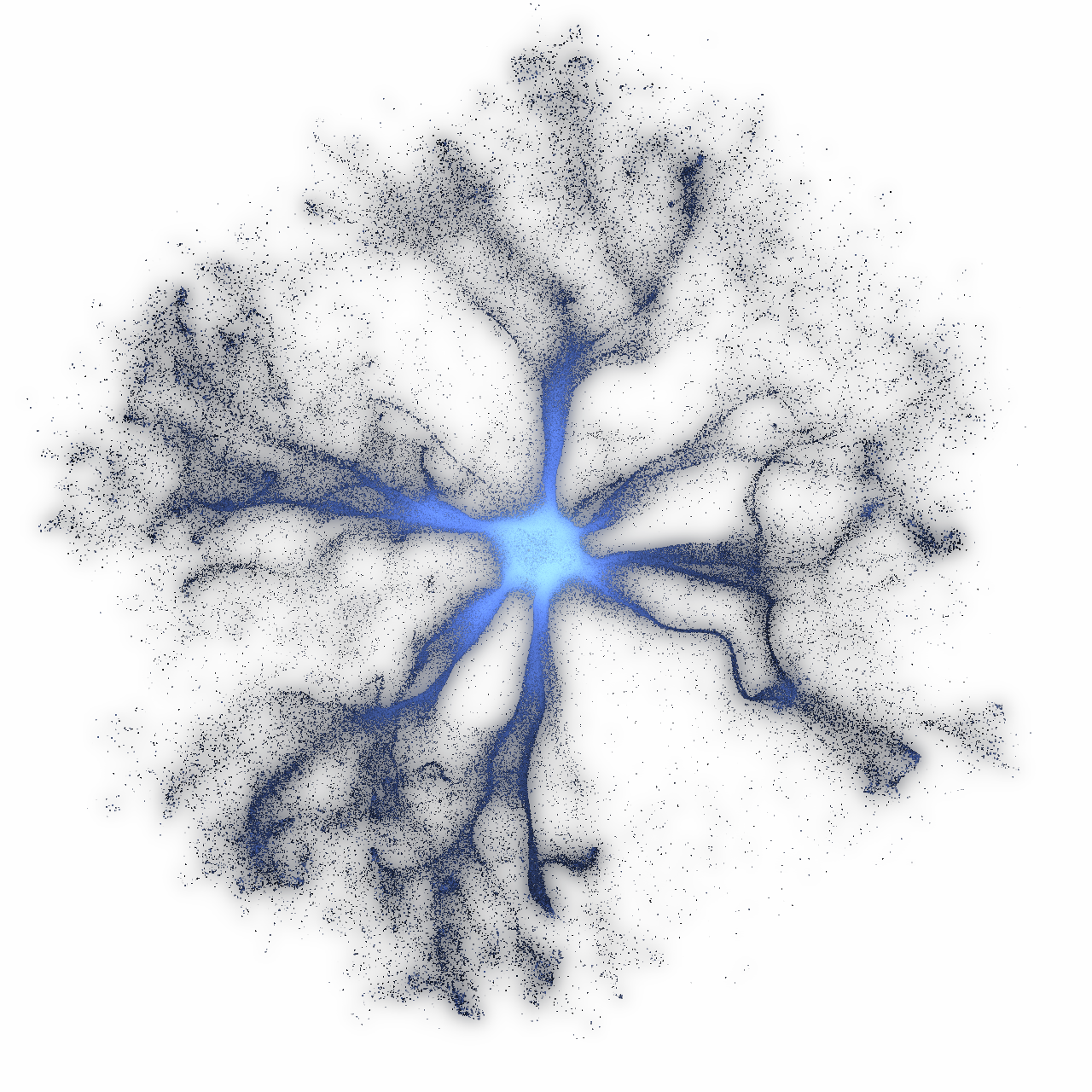 In the simulation, the intense center gradually distributes into channels. The color softens as grief integrates. It becomes less sharp, less consuming